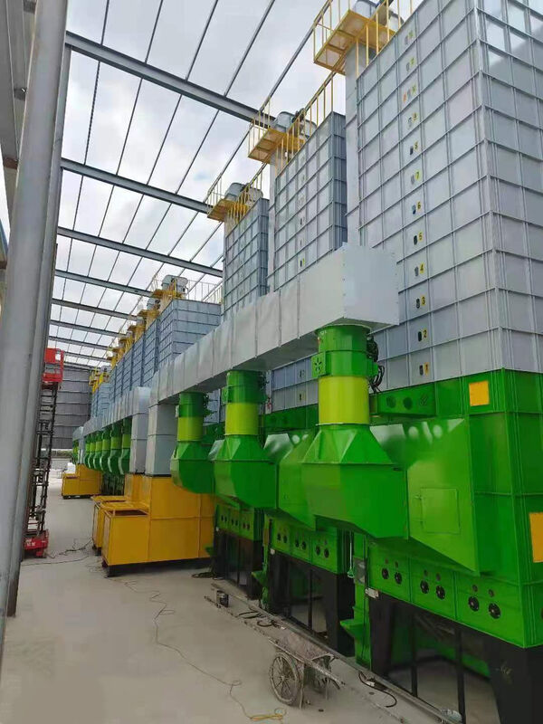 2) 6 Ensembles de séchoirs de type lot de 30 tonnes connectés en rangée, l'air chaud passerait par les conduits